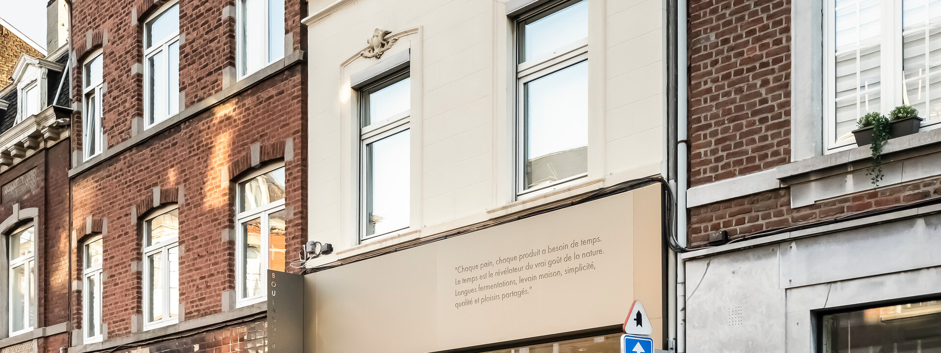 Le projet se construit autour de la mise en valeur des produits et de la pratique du boulanger. Un hall d’entrée commun à la boutique et au logement permet de dégager une large vitrine pour l’exposition des pains. Entre la boutique et l’atelier, une grande baie vitrée et coulissante permet aux clients d’observer l’activité de l’atelier.